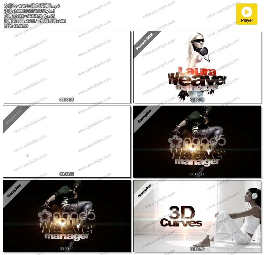 关键词:3D,三维,立体,曲线,文本,文字,标题,字幕,AE,模板,素材