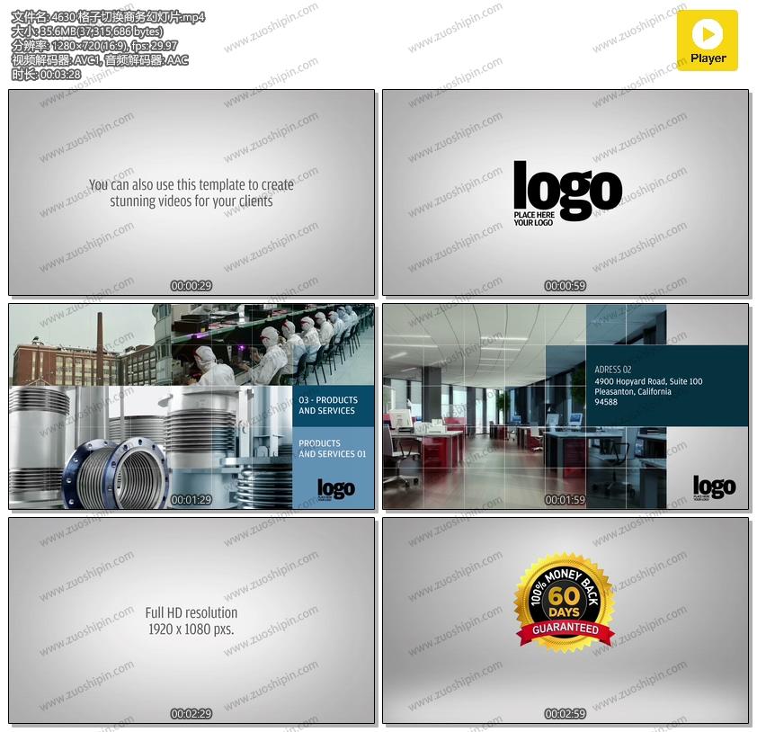 关键词:格子,马赛克,切换,商业,商务,公司,宣传,介绍,图片,幻灯片,产品,展示,AE,模板,素材