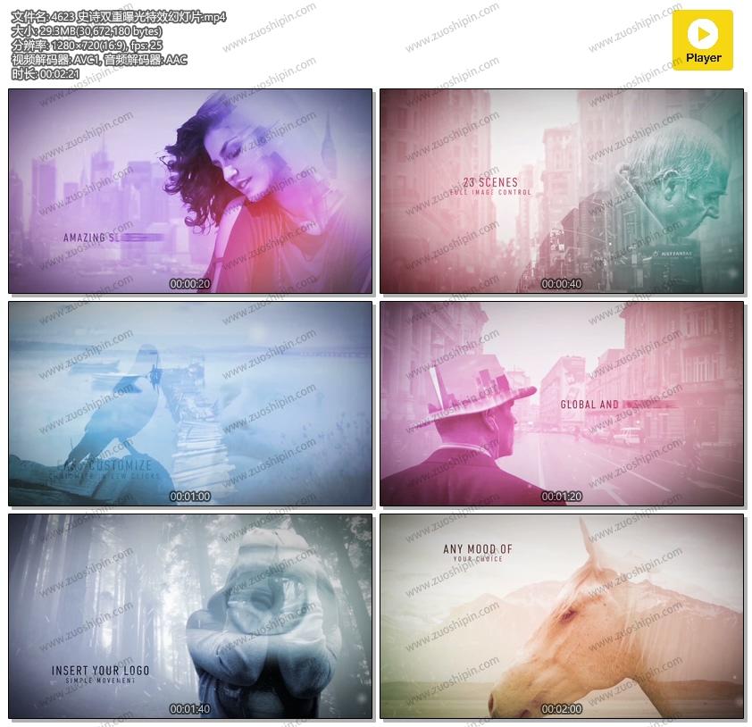 关键词:史诗,双重,曝光,特效,图片,相片,幻灯片,照片,相册,AE,模板,素材