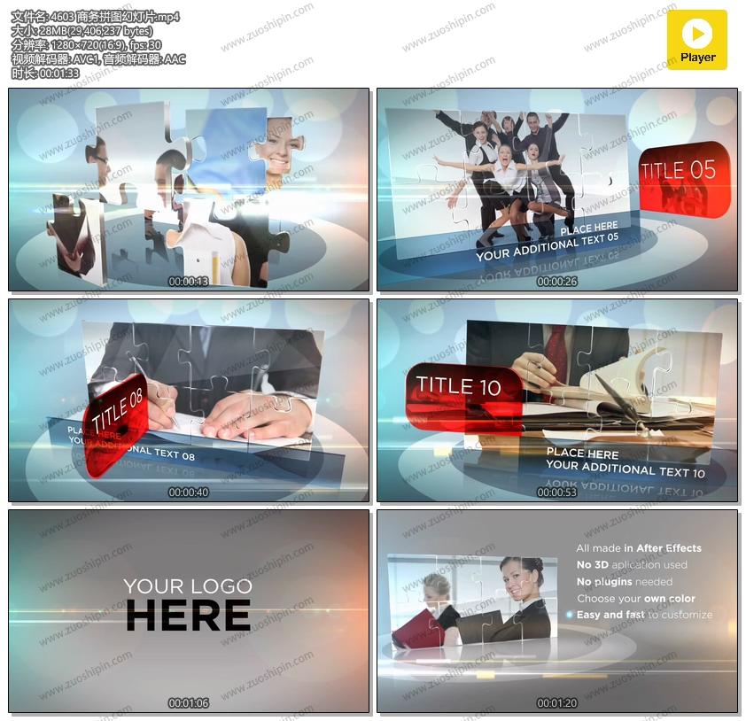 关键词:商业,商务,拼图,照片,图片,相片,幻灯片,视频,相册,AE,模板,素材