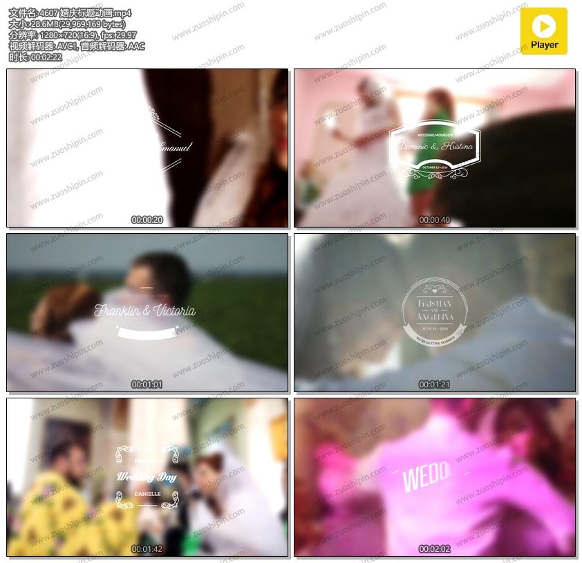关键词:婚礼,婚庆,文本,文字,标题,字幕,动画,徽章,LOGO,标志,包装,AE,模板,素材