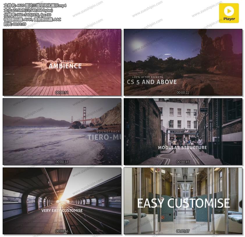 照片三维化效果展示AE模板素材3D Photo Trailer