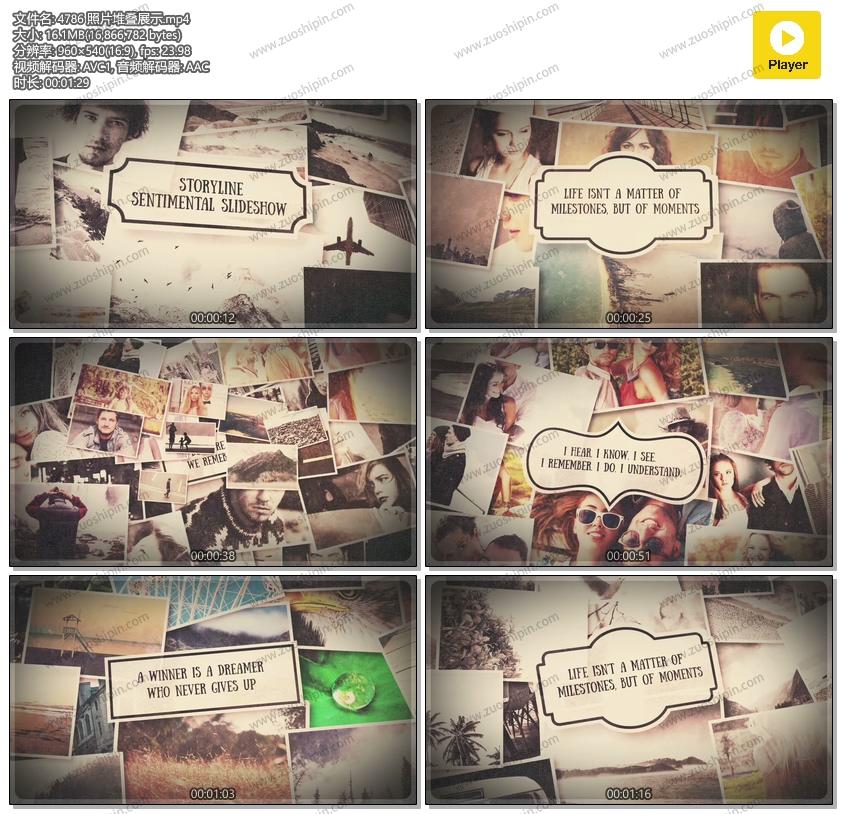 追功网为用户提供AE模板视频相册系列:复古照片堆叠视频相册展示AE模板素材Storyline的在线预览以及工程源文件的下载服务。