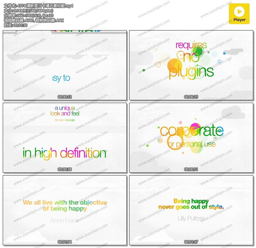 关键词:抽象,动画,圆圈,清洁,云,多彩,模块化,片头,促销,彩虹,简单,阳光,标题,版式,白abstract, animated, circles, clean, clouds, colorful, modular, opener, promo, rainbow, simple, sunshine, titles, typographic, white