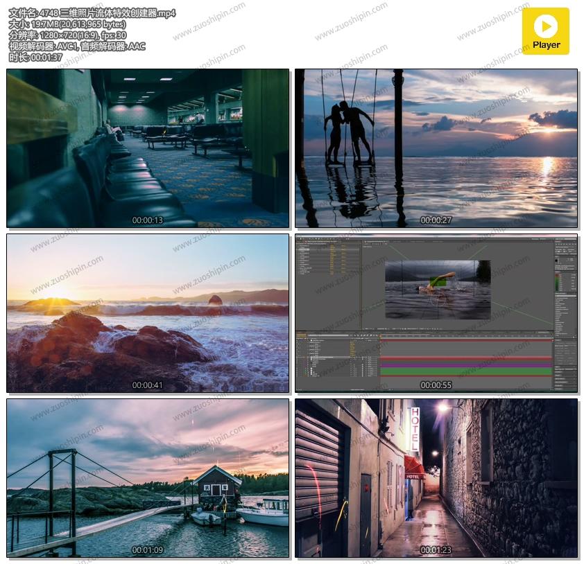追功网为用户提供AE模板视频相册系列:三维照片流体特效创建器AE模板素材3d Photo Creator With Liquid FX Animations的在线预览以及工程
