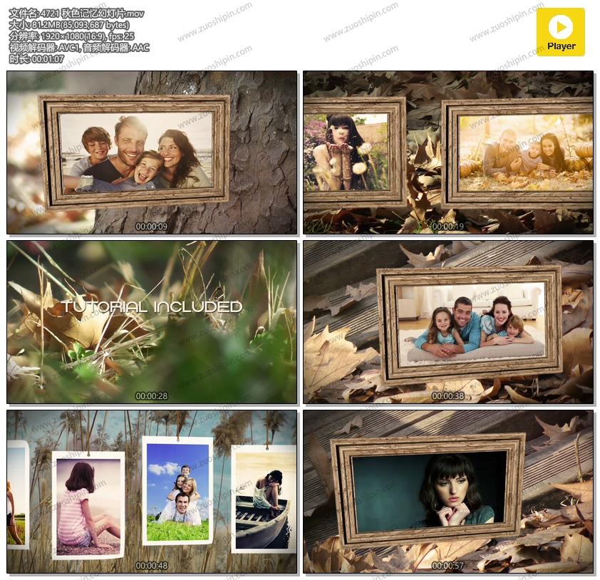 关键词:秋色,记忆,回忆,图片,相片,照片,幻灯片,视频,相册,AE,模板,素材