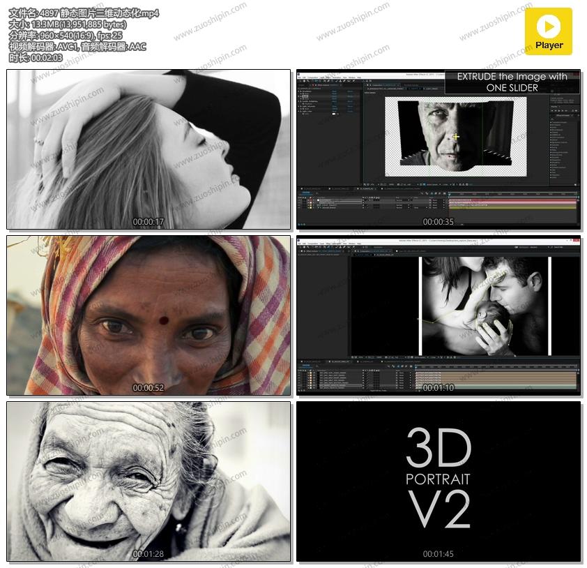 追功网为用户提供AE模板视频相册系列:静态图片三维动态化AE模板素材3D Portrait的在线预览以及工程源文件的下载服务。