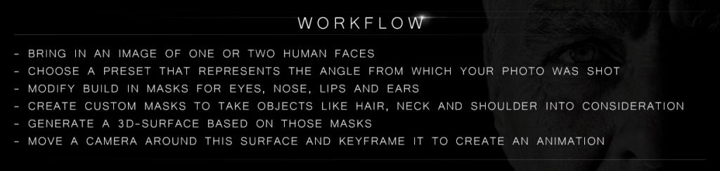 This doesn’t generate a full-spherical-3d-head-model, but displaces a planar surface.