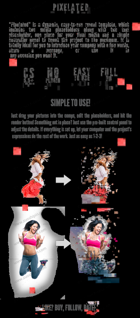 追功网为用户提供AE模板片头片尾系列:像素化抖动开场片头AE模板素材Pixelated的在线预览以及工程源文件的下载服务。