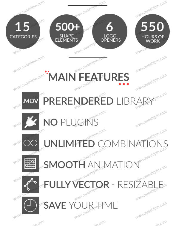 关键词:动画元素,清洁,设计元素,效果,元素,爆炸,介绍,简约,运动fx,片头,包,形状图层,形状,简单,工具animated elements, clean, design elements, effects, elements, explosions, intro, minimalistic, Motion fx, opener, pack, shape layers, shapes, simple, tool