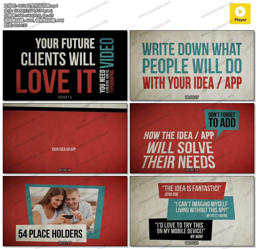 追功网为用户提供AE模板文本字幕系列:文字排版动画AE模板素材Promote Your Idea, App Or Service的在线预览以及工程源文件的下载服务。