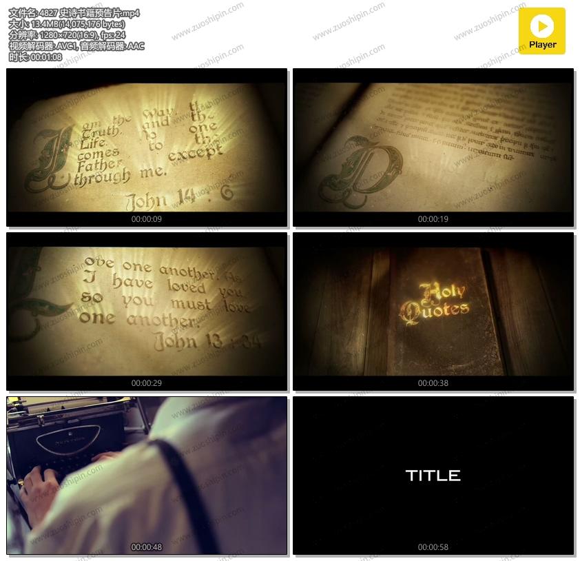 关键词:史诗,书本,书,书籍,翻页,文本,文字,标题,字幕,字幕条,开场,片头,栏目,包装,预告,预告片,AE,模板,素材