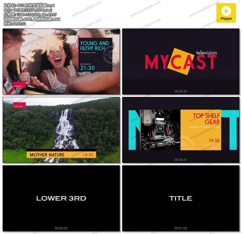 关键词:电视,节目,预告,方块,变化,视频,标题,字幕条,栏目,包装,AE,模板,素材