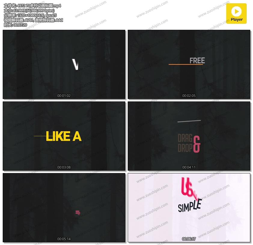 排版动画AE模板素材70 Different Titles的在线预览以及工程源文件的下载服务。