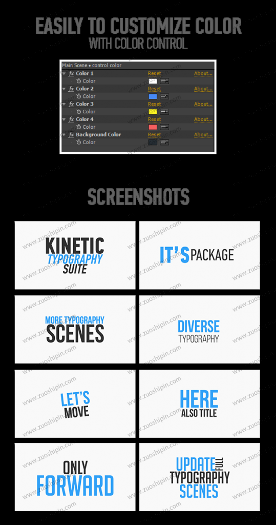 追功网为用户提供AE模板文本字幕系列:动力文字排版动画AE模板素材Kinetic Typography Suite的在线预览以及工程源文件的下载服务。