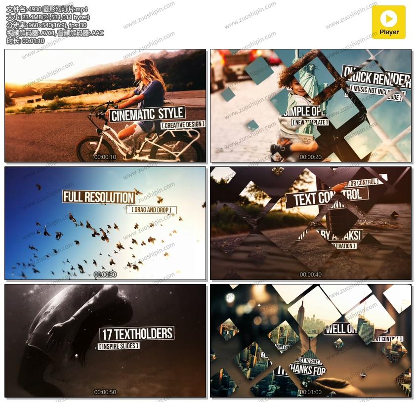 追功网为用户提供AE模板视频相册系列:菱形标题幻灯片视频相册AE模板素材Rhombus Slideshow的在线预览以及工程源文件的下载服务。