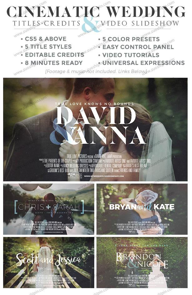 The perfect project for your wedding video. Whether you are editing your own wedding video or are a videographer adding that extra touch to a client’s video, this is what you need. Featuring 5 different title styles to choose from and edit. As well as a credit block to add those honorable mentions to your project. It gives it that extra professional look. All text is editable. Includes a custom light leak with subtle light leaks and glows throughout the project. An easy control panel makes it quick and easy to make adjustments. Adjust the amount of grunge and scratches. Select from 5 color presets: Soft, Bold, Black and White, Vintage Cool and Vintage Warm.