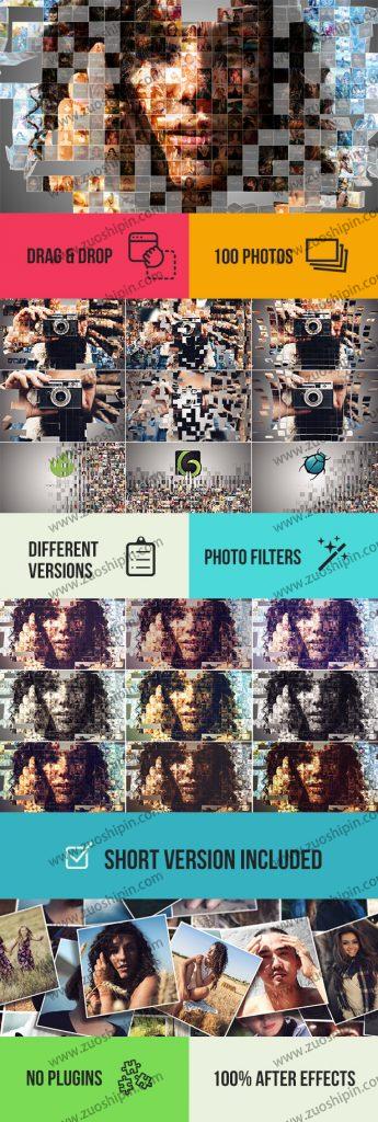 追功网为用户提供AE模板视频相册系列:马赛克照片动画展示AE模板素材Mosaic Photo Animation Pro的在线预览以及工程源文件的下载服务。