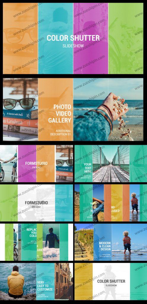 追功网为用户提供AE模板视频相册系列:多彩幻灯片分栏展示AE模板素材Color Shutter Slideshow的在线预览以及工程源文件的下载服务。
