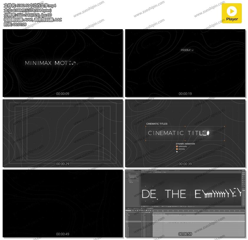 模板文本字幕系列:50个动作文字动画AE模板素材Minimax Motion Type的在线预览以及