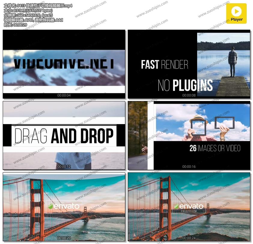 追功网为用户提供AE模板视频相册系列:快速格子切换视频展示AE模板素材Fast Slideshow的在线预览以及工程源文件的下载服务。