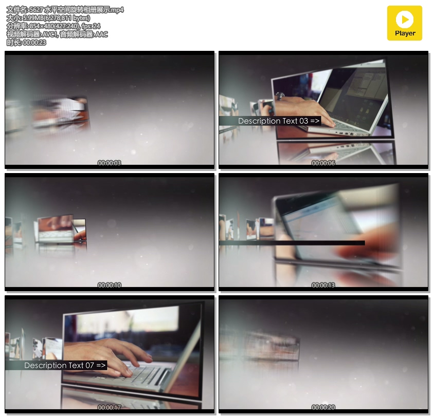 关键词:水平,空间,旋转,图片,照片,相片,幻灯片,视频,相册,标题,AE,模板,素材