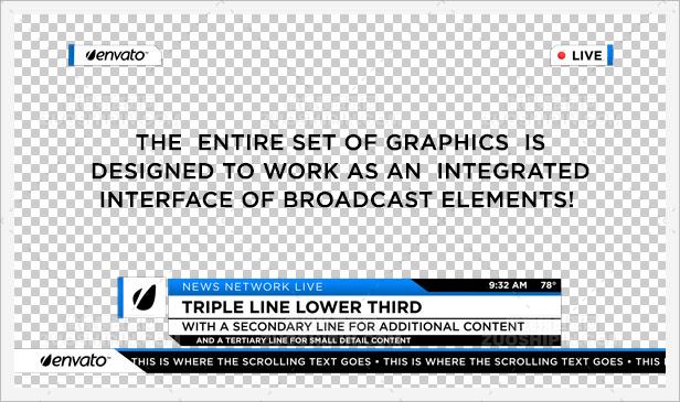 News Network 8-pack of lower thirds is the perfect solution for any kind of video theme, but is especially handy for news related or broadcast themed projects. It’s modern, clean and professional look will enhance the overall production value of your video. Fully and easily customizable, and designed and built entirely within After Effects, our News Network pack of lower thirds requires no 3rd-party plugins, and works with all versions of After Effects from CS3 and above.