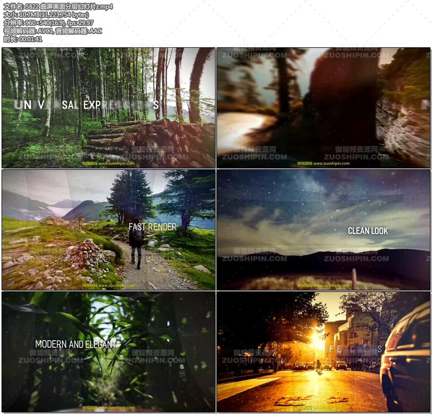 追功网为用户提供AE模板视频相册系列:曲屏画面分层幻灯片AE模板素材The Layers Slideshow的在线预览以及工程源文件的下载服务。