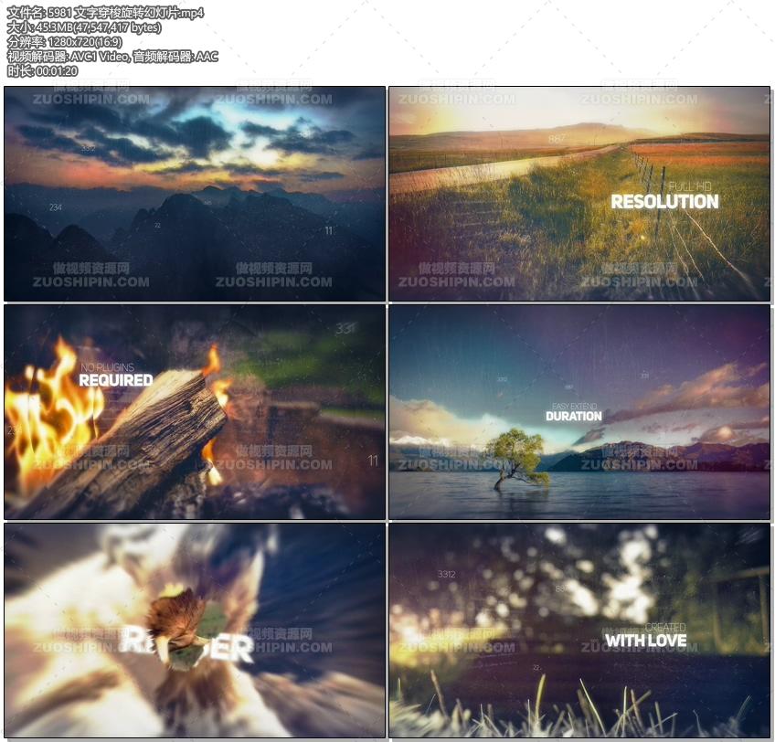 追功网为用户提供AE模板视频相册系列:文字穿梭旋转幻灯片AE模板素材Cinematic Slideshow的在线预览以及工程源文件的下载服务。