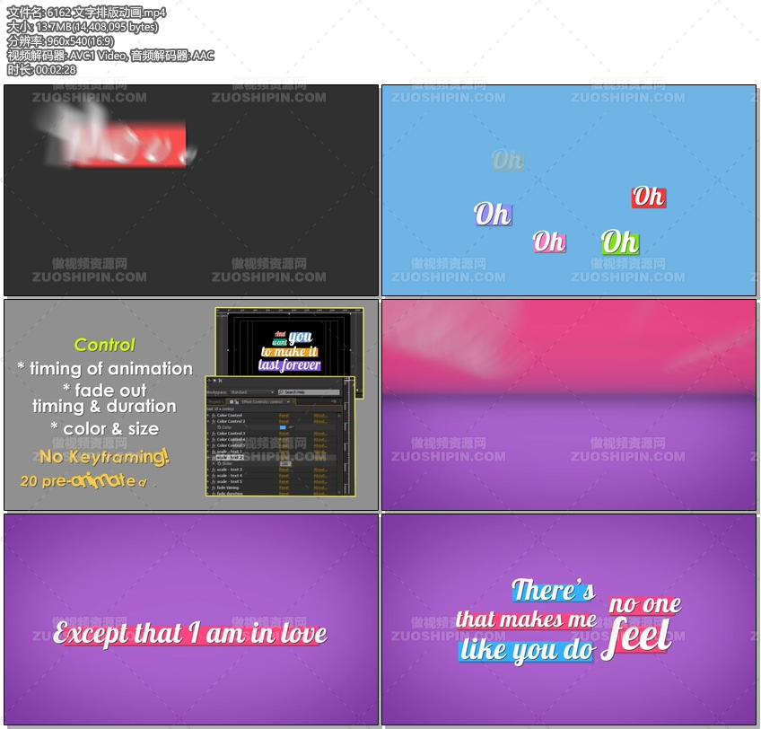 追功网为用户提供AE模板文本字幕系列:文字标题字幕排版动画AE模板素材Lyric Video Template的在线预览以及工程源文件的下载服务。