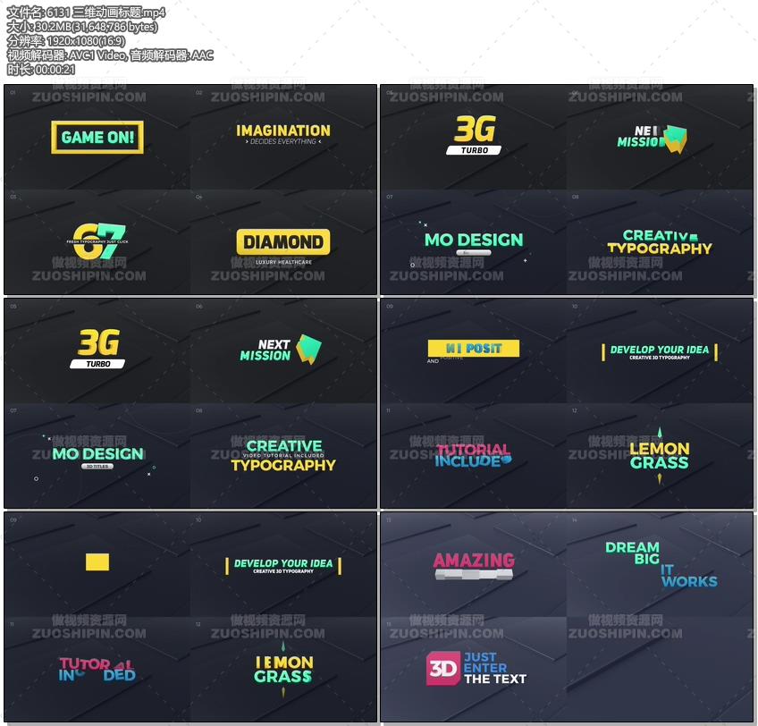 追功网为用户提供AE模板文本字幕系列:三维文字动画标题字幕AE模板素材3D Corporate Titles的在线预览以及工程源文件的下载服务。