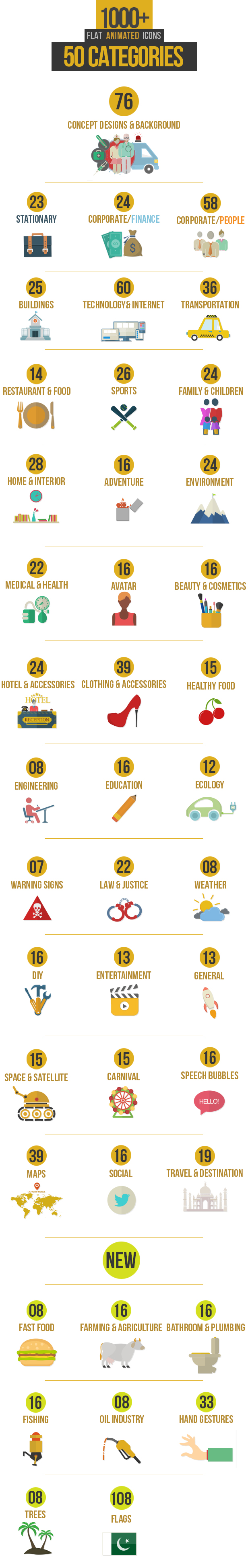 A Library of 1000+ Colorful and Advanced Animated Flat Icons with over 50 Useful Categories that covers most of your needs to beautify your projects!