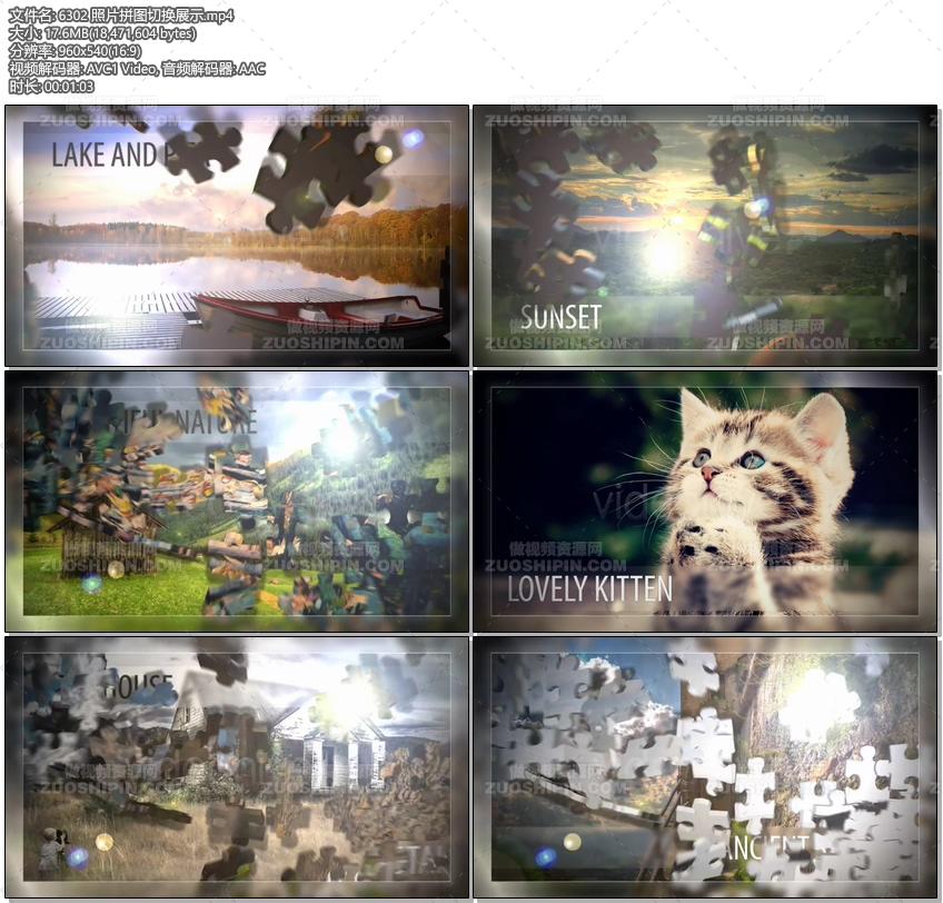 关键词:图片,照片,相片,幻灯片,视频,相册,拼图,切换,展示,AE,模板,素材