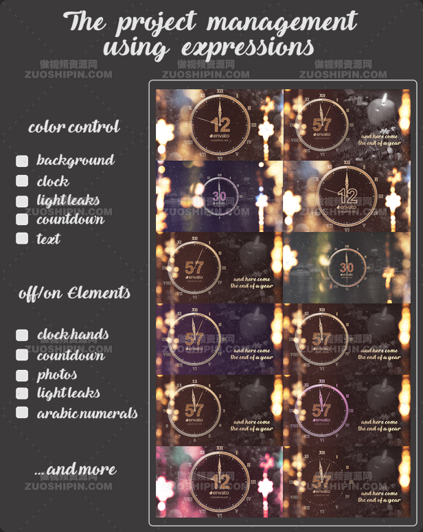 Dear friends and colleagues! I am glad to present to your attention the countdown template. This project will allow to quickly prepare for a certain part of your New Year’s celebration. The project uses the weight setting using expressions. You can easily pick up a custom design! I have written a detailed tutorial, which you can download right now (see description).