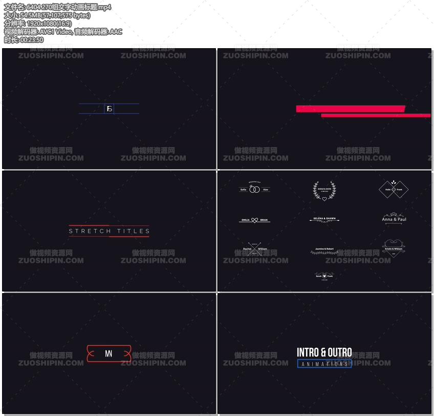 AE模板> 270组文字动画标题字幕排版AE模板素材270 Titles Pack