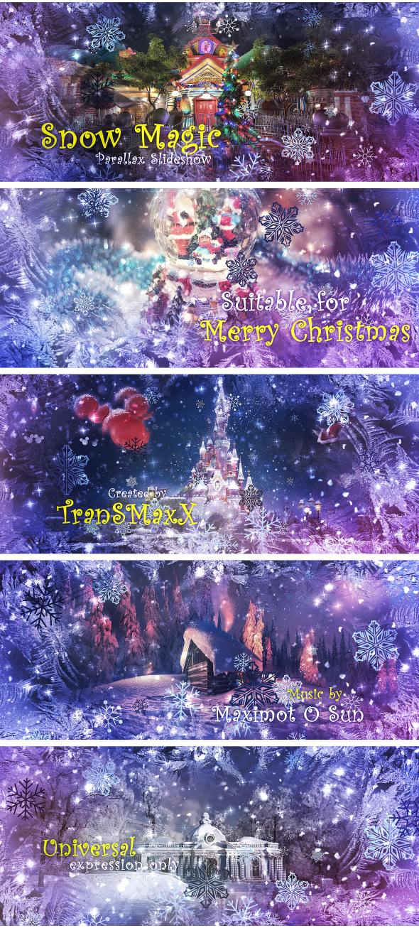 Winter Parallax Slideshow is a realy high quality, well organized and easy customizing template. This project has modular structure, so you can easily change duration. Project includes video tutorial, even if you first time run program after effects you can easily complete job. Just drop your image or video, edit the text, add audio and enjoy result!