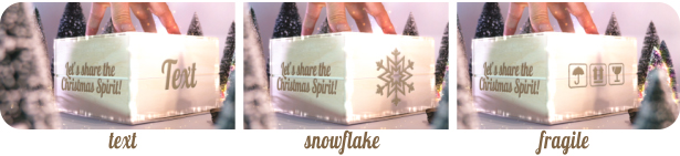 - Easily customize greeting texts to your needs! (three sides of the gift-box). Use your favorite fonts, or the ones in preview video.