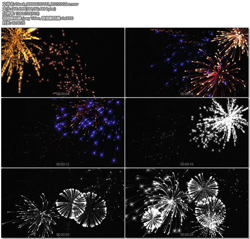 本视频素材是由iStockVideo机构出品的烟花视频素材合辑,iStockVideo Fireworks Bundle,格式:MOV,分辨率:1920X1080,适用于各类后期软件。