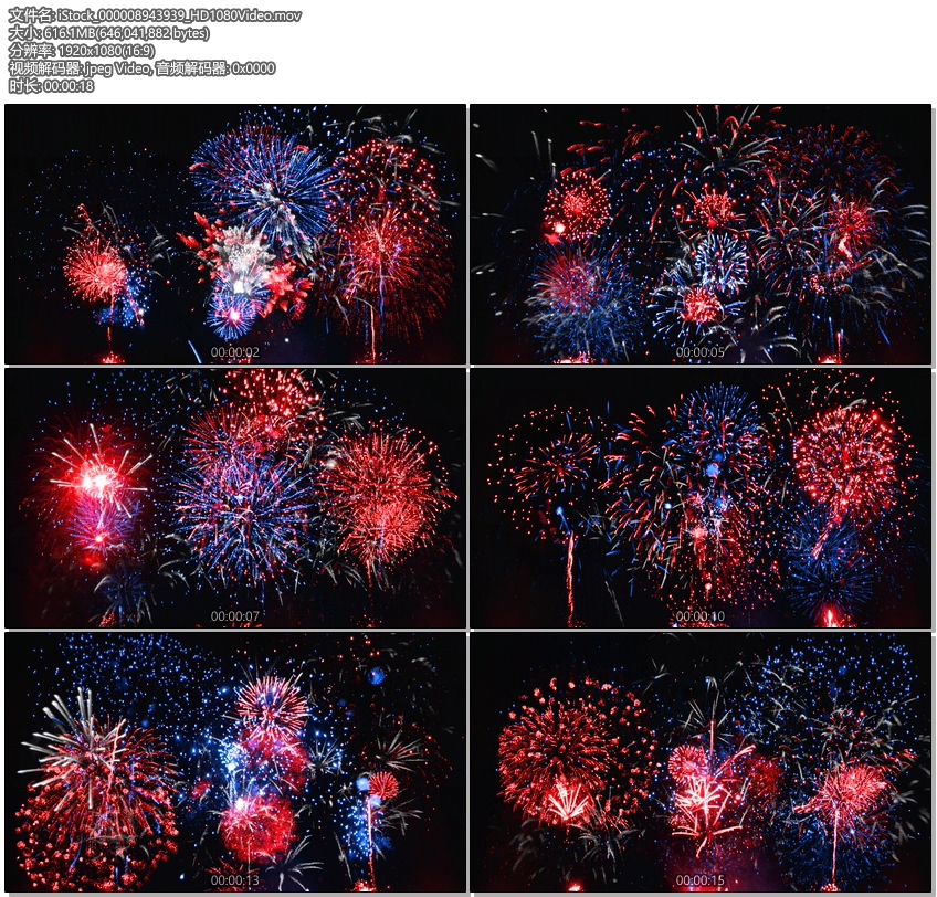 本视频素材是由iStockVideo机构出品的烟花视频素材合辑,iStockVideo Fireworks Bundle,格式:MOV,分辨率:1920X1080,适用于各类后期软件。